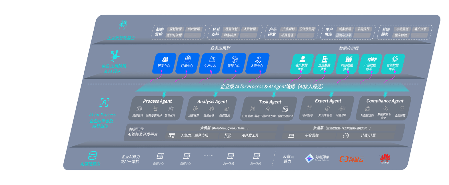 君临国际问学智车解决方案是一套基于AI技术的汽车行业智能化系统,,,覆盖从底层算力到顶层AI应用的全栈方案。。。方案由算力层、、、模型层和应用层组成:算力层,,,方案支持多种一体机配置,,,具备云端灵活部署、、、、多云适配以及动态优化计算资源的能力;模型层,,君临国际问学平台版提供了企业级AI应用一站式构建与管理平台,,,,支持基于后训练强化技术的汽车企业专属模型的训练、、评测和运营;应用层,,君临国际问学DeepSeek版提供包括超级员工、、、智能招采、、智能营销、、、、智能客服、、、、AI for BI等一系列解决方案,,,,可助力汽车行业实现数字化转型,,让管理更智能、、响应更敏捷。。。