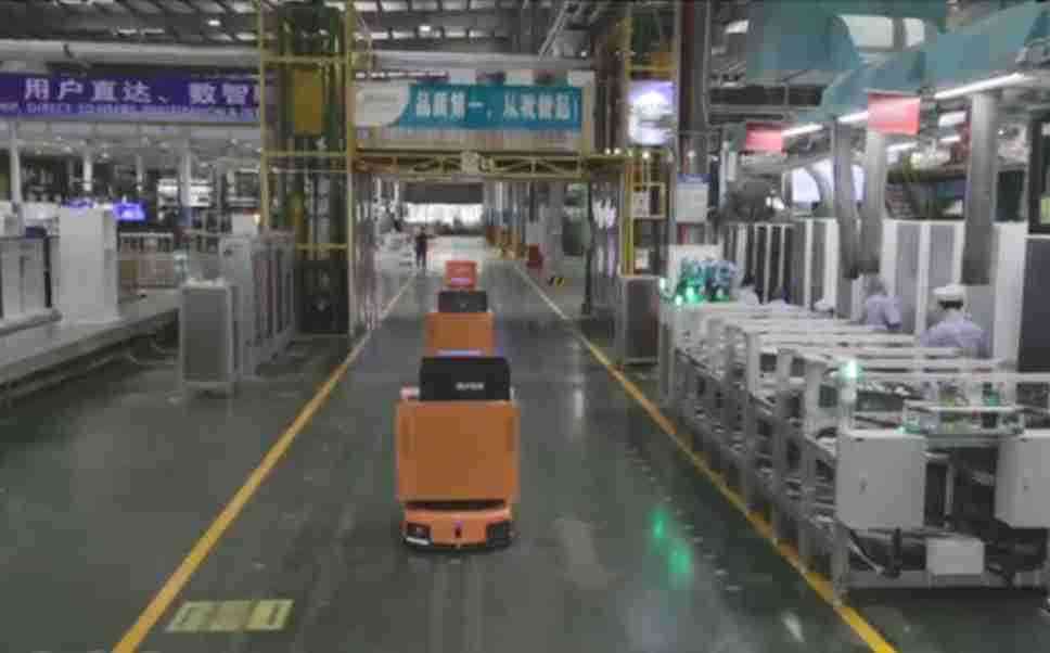 为车载冰箱物流配送打造的智能解决方案,,,,包含产中物流通过潜伏举升AMR搬运至线边,,产后成品物流智能仓储,,,,流程包含产中物流智能齐套入库,,线边安灯叫料AMR智能配送至线边,,,,成品入库、、、出库,,,,通过无人堆高车机器人,,智能仓储管理替代人工作业管理,,,,实现更高存储、、更高效率、、更具柔性化的解决方案。。。